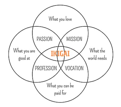 The Japanese concept of Ikigai encourages us to live in the present moment and accept ourselves as we are today. By doing this, we can naturally move closer towards understanding our own individual purposes.